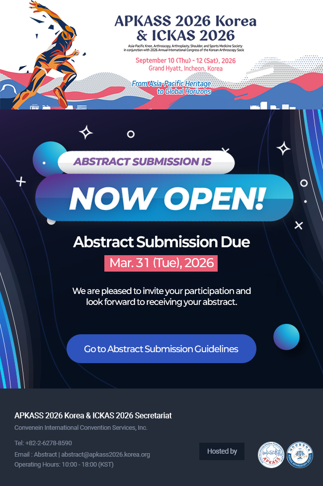 News & Notice [APKASS 2026 Korea & ICKAS 2026] Abstract Submission is Now Open! 조회수 : 77 게시일 : 2026-01-06 목록 수정 삭제